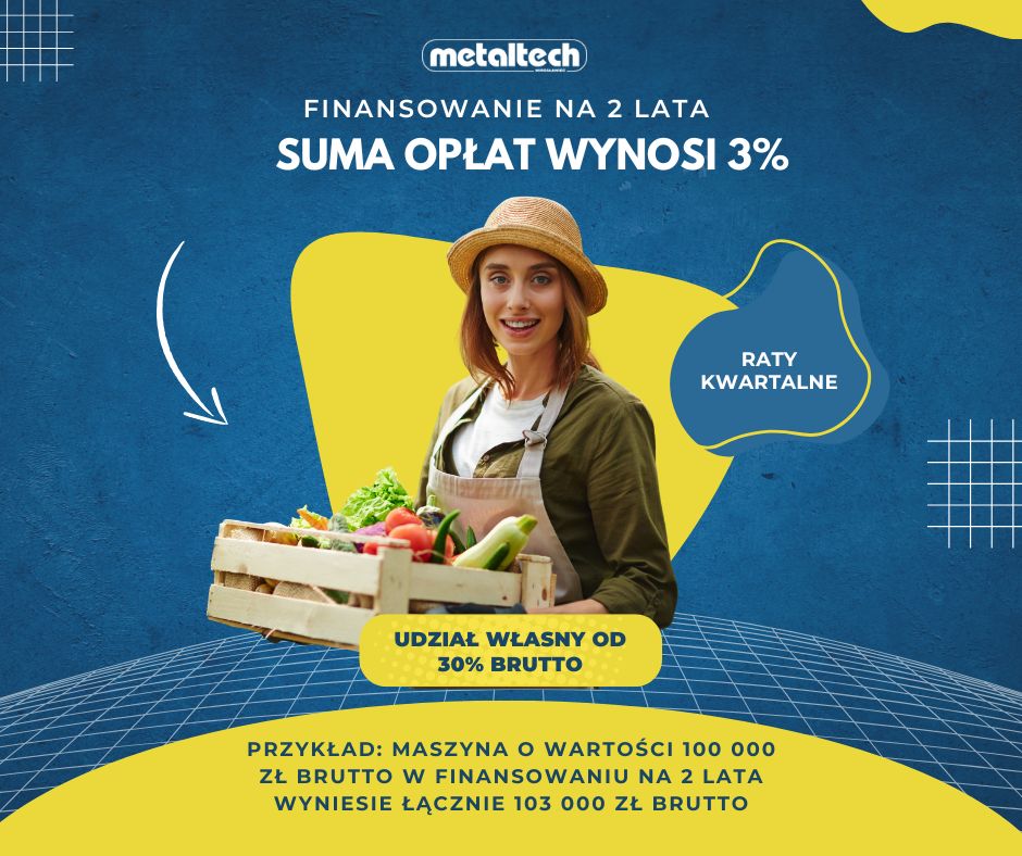 Pragniemy zapewnić Państwu korzystne warunki zakupu naszych maszyn, dlatego wraz z Santander Leasing przedstawiamy nową ofertę finansowania fabrycznego! Dzięki niej w prosty i szybki sposób możecie cieszyć się produktami Metaltech w swoim Gospodarstwie. Poniżej przedstawiamy 4 różne oferty. Sprawdź, która najlepiej spełni Twoje wymagania: